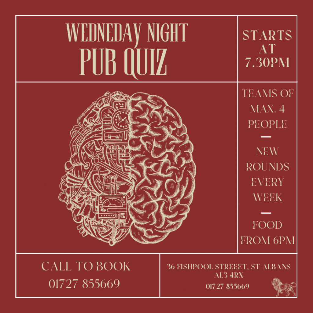 Get your friends together and show off your general knowledge skills with four rounds plus a table round at our weekly Wednesday quiz.